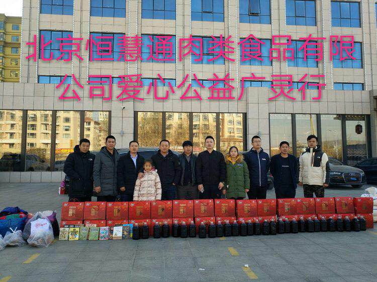 2018年11月24日,我公司北京市恒慧通肉類食品有限公司總經理楊海燕帶領公司高層管理人員一早就從北京出發,帶著米面油、肉制品、書本、衣物等愛心物資,驅車四百多公里來到山西省大同市廣靈縣慰問當地29戶貧困家庭,為他們送去冬日的溫暖。