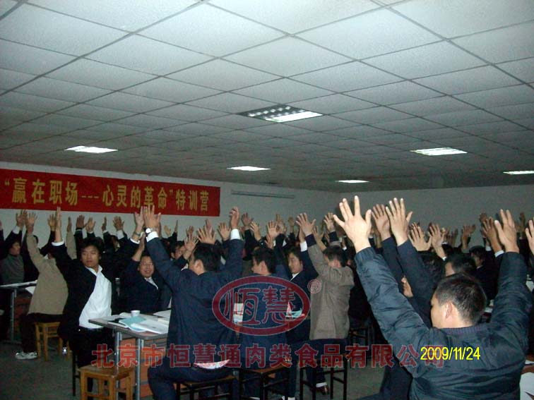作為國(guó)內(nèi)首家“無(wú)淀粉”企業(yè),恒慧食品以安全放心的高品質(zhì)標(biāo)準(zhǔn),為廣大消費(fèi)者提供肉制產(chǎn)品,是食品安全的標(biāo)桿企業(yè)。為了提升員工執(zhí)行能力和職業(yè)素養(yǎng),為進(jìn)一步貼近消費(fèi)者,增加核心競(jìng)爭(zhēng)力,2009年11月24日,在楊總的大力支持下,成功舉辦了贏在職場(chǎng)--心靈的革命特訓(xùn)活動(dòng),公司領(lǐng)導(dǎo)高度重視這次培訓(xùn),鹿總、胡總?cè)虆⑴c培訓(xùn),各部門(mén)經(jīng)理、主管及銷(xiāo)售人員積極主動(dòng)的參加了這次培訓(xùn)。