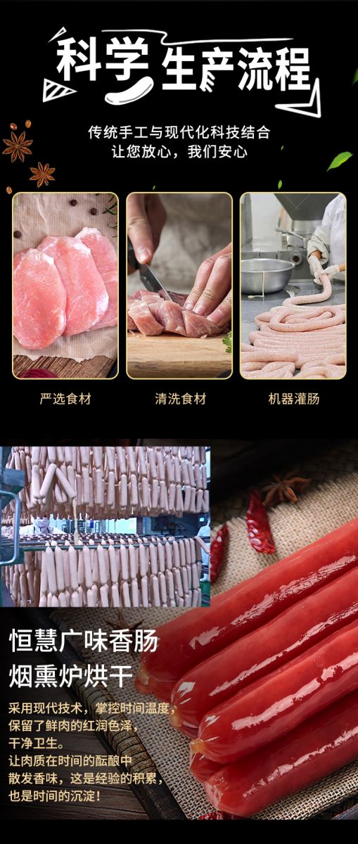 腸體通透,細(xì)長圓潤,保留了鮮肉的自然紅潤,色澤自然;